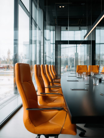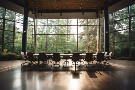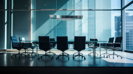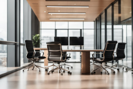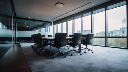The interior of a modern office meeting room exudes a sense of professionalism and sophistication.