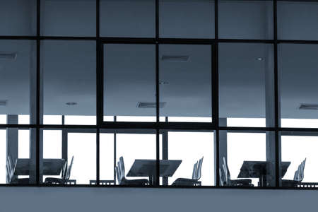The concept of empty offices with no workers. Pandemic and remote work period.