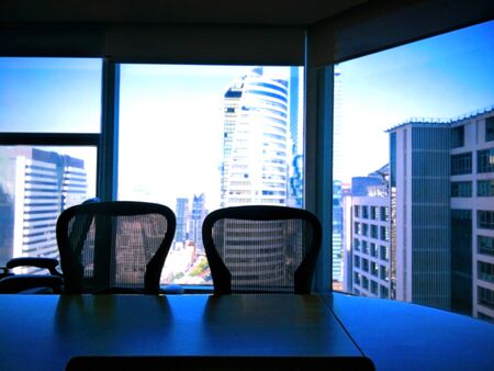 Aestetic indoor business interior office meeting room with table and chairs loock from floor