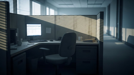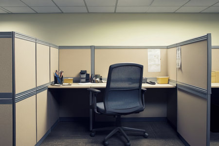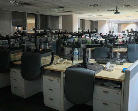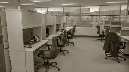 The concept of empty offices with no workers. Pandemic and remote work period.