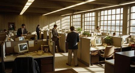 Modern business, glass-walled startup office, open and spacious workspace exudes a modern and innovative vibe, fostering a dynamic atmosphere that supports creativity, collaboration, and business growth.