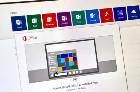 MONTREAL, CANADA - SEPTEMBER 8, 2018: Microsoft Office 365 installation procees on a desktop screen. Microsoft Office is a family of client and server software, the services developed by Microsoft