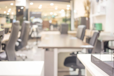 Modern office interior with furniture and equipment. Selective focus. Blurred background