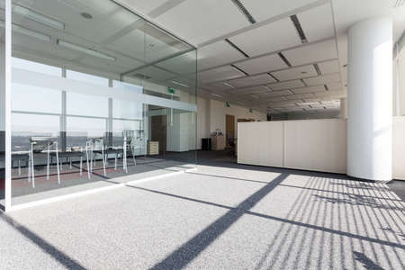 interior of modern office with white walls and floor, nobody inside