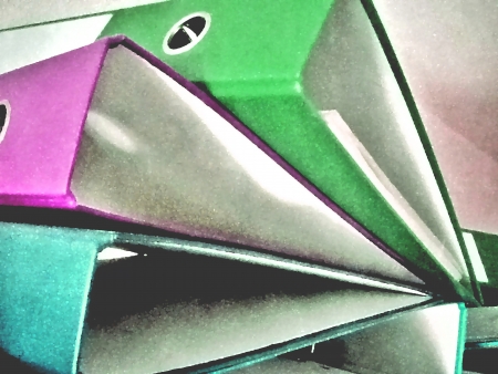 Colorful document files overlaid on the office desk