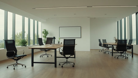 Divided Desks: Exploring the Vastness of an Empty Modern Office Space