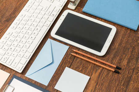 flat desktop office at home. High quality photo