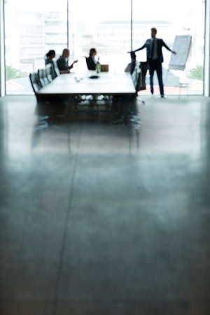 Blurred background of Business executive making presentation to colleagues in office, during meeting, explaining, consultation.