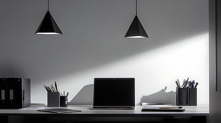 Modern office interior with furniture and equipment. Generative AI