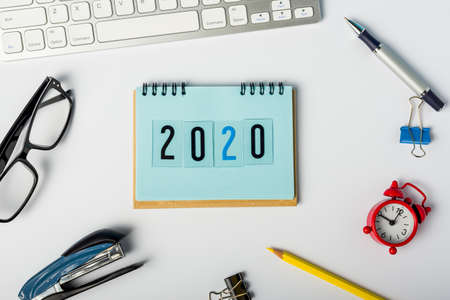 2020 year - text on notebook. New year 2020 beggining - business concept