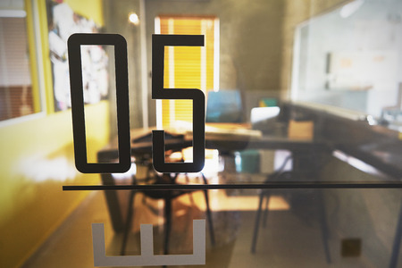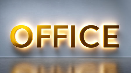 modern office space interior with sign on the wall