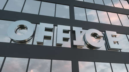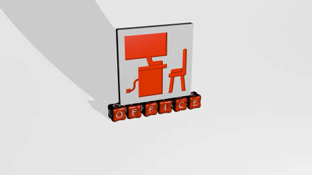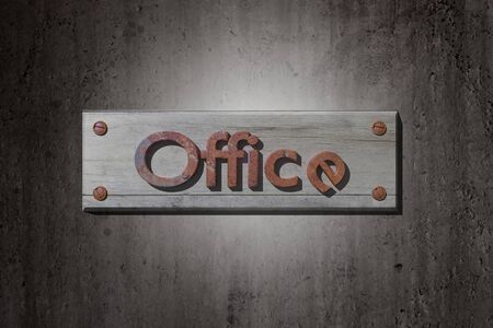 3d rendering of a wood placard with the word office