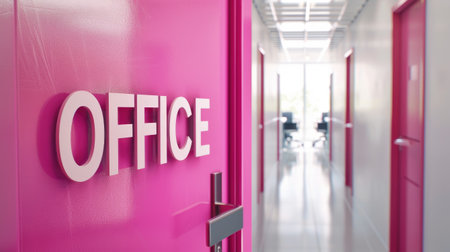 modern pink office space interior with sign on the wall