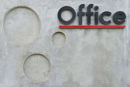 grey concrete wall with office text background texture