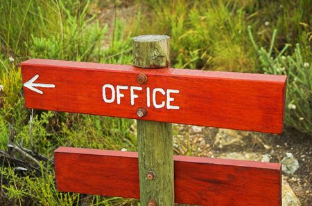 Sign indicating direction to the office.