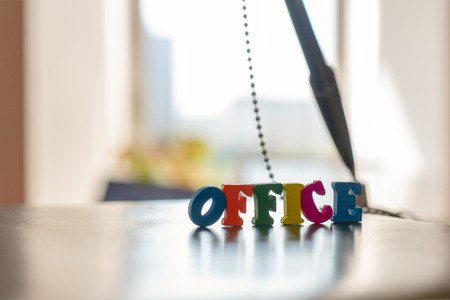 Word from the color letters Office, against the background of the folder and the handle for signatures.