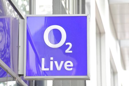 DUESSELDORF, GERMANY - CIRCA AUGUST 2019: O2 sign