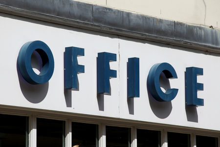 LONDON, UK - JULY 31th 2018: Office shoe shop store front branding on Oxford Street in central London.