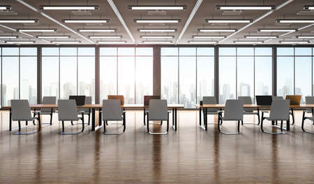 Modern office interior. Workplace of business people. 3D rendering