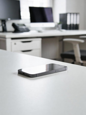 Smartphone on the table in the office. Selective focus.