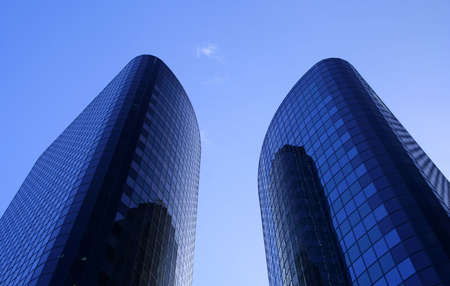 Shiny reflective business buildings and the blue sky with clouds