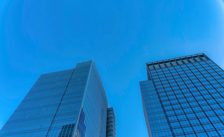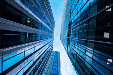 Bottom view of modern office buildings in the business district