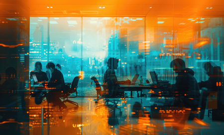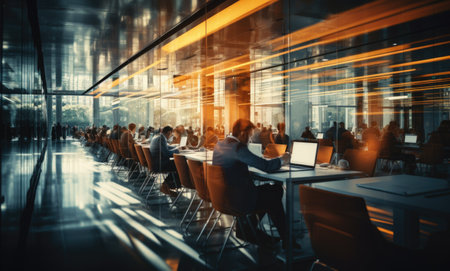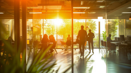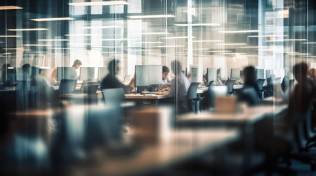 People in a coworking or office space seen in a blurry silhouette. - image generated with Generative AI