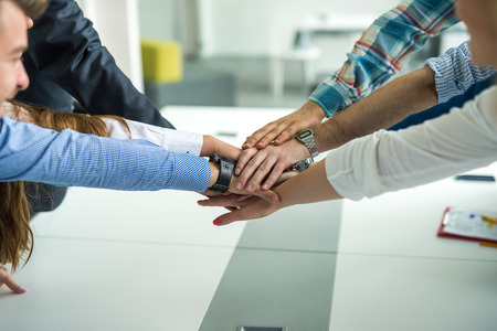 Business people putting their hands together. Concept of teamwork and partnership