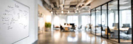 Blurred image of modern office interior with bokeh background.
