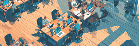 Efficiency at a Glance: An Elevated Perspective of a Vibrant Open Plan Office