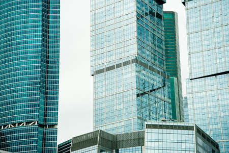 Glass surface of skyscrapers view in district of business centers.