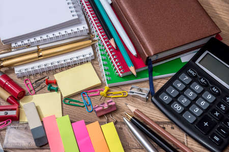 different stationary items on the office or student's desk