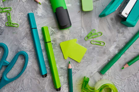Office stationery supplies in green tones