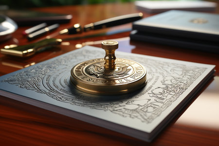 Wooden stamp on the document. Generative AI