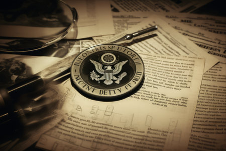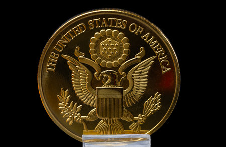 United States of America (USA) seal on a black table.