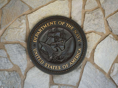 Riverside, California USA - June 16, 2021: U.S. Navy seal, crest or plaque on flagstone background