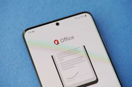 New york, USA - June 28 2021: Run microsoft office app on smartphone screen close up