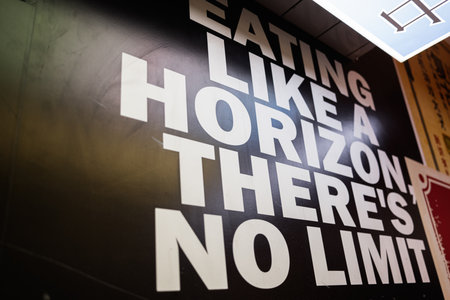Eating like a horizon there's no limit. Typography captured from a motivational artistic design placed on a dark themed backdrop.