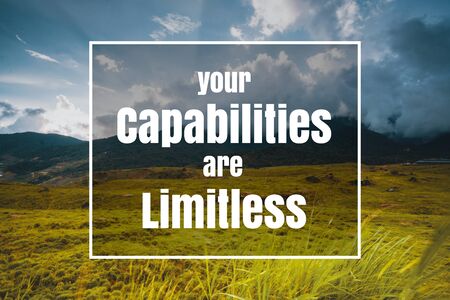 Inspirational and Motivational Quote. Your Capabilities are Limitless. Grass Against Sky Background.