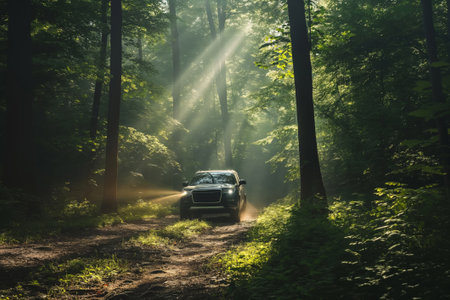 Off-Roading Through the Wilderness: An adventurous vehicle navigates a rugged forest path, offering a thrilling outdoor exploration experience.