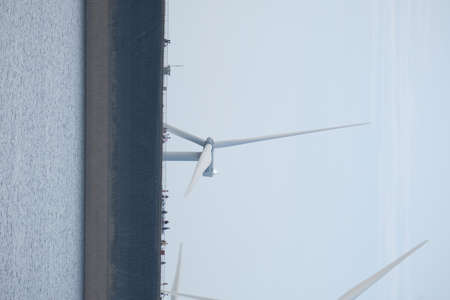 Wind turbines standing in water generate electricity. Wind turbines in the Netherlands.
