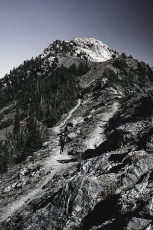 A person exploring a new hiking trail for the first time, taking in the natural beauty
