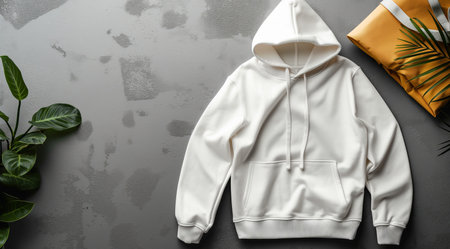White hoodie with a hood on a light background, created with Generative AI technology.