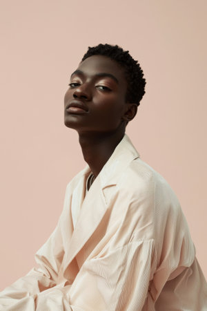 Group of young African American adults in beige attire standing against neutral background, AI generated