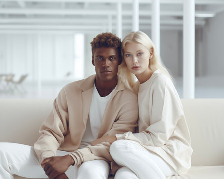 Portrait of a young couple in a white shirt in the room