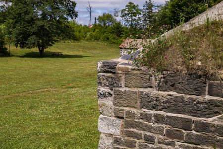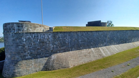 Montreal, QC, Canada - August 7, 2025: Stone fortification walls of the historic Citadelle of Qu