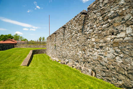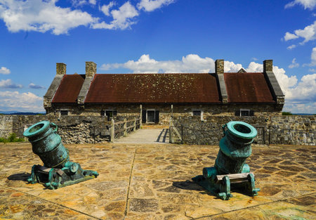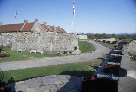 Fort Ticonderoga, fort headquarters, stone walls and cannons, New Yorkk State, USA