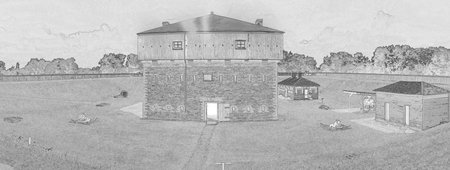A black and white image of an old Fort Wellington, Ontario, Canada