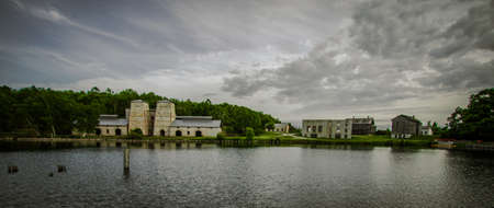 Michigan Ghost Town Panorama. The abandoned town of Fayette, Michigan on the shores of Lake Michigan. The ghost town is a historical state park in Michigan's Upper Peninsula.