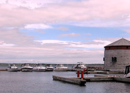 Boats in Confederation basin, lake Ontario near mooring Kingston, Canada